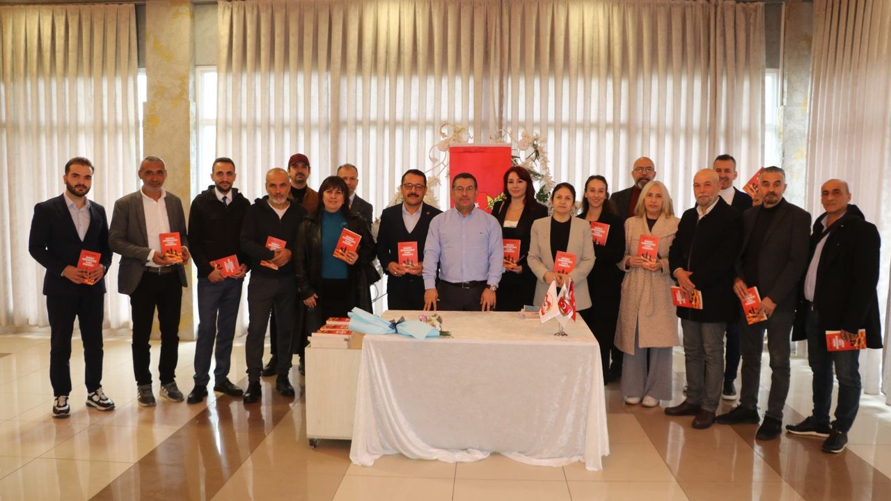 Esat Aydın, yaklaşık 1 saat süren söyleşinin sonunda "Kusurlu Demokrasiden Planlı Otokrasiye" adlı kitabını imzaladı.