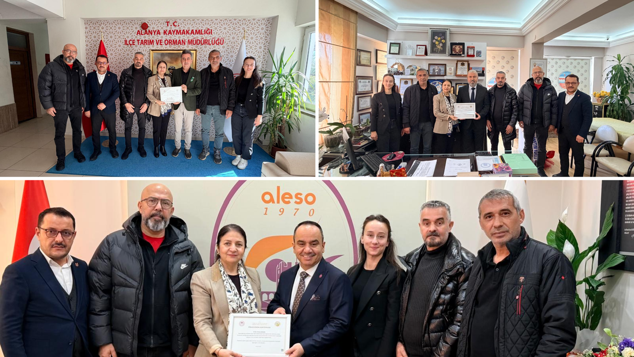 AGC yönetimi Alanya Esnaf ve Sanatkarlar Odası Başkanlığı’na seçilen Ali İhsan Özdemir ile seçimde güven tazeleyen Alanya Otelciler Pansiyoncular Lokantacılar Kafeteryacılar Turistik Eşya Satıcıları Odası Başkanı Hüseyin Değirmenci ile Alanya Minibüsçüler, Otobüsçüler ve Servis Aracı İşletmecileri Esnaf Odası Başkanı Paşa Özkan’a tebrik ziyaretinde de bulundu. Ziyaretlerde AGC Başkanı Gaye Coşkun ve Yönetim Kurulu üyeleri gündeme dair istişarelerde bulundu. Başkan Coşkun, yanan ormanların yeniden yeşertilmesine katkı amacıyla sosyal farkındalık oluşturmak için yapılan fidan bağış sertifikalarını İnal, Özdemir, Değirmenci ve Özkan’a hediye etti.