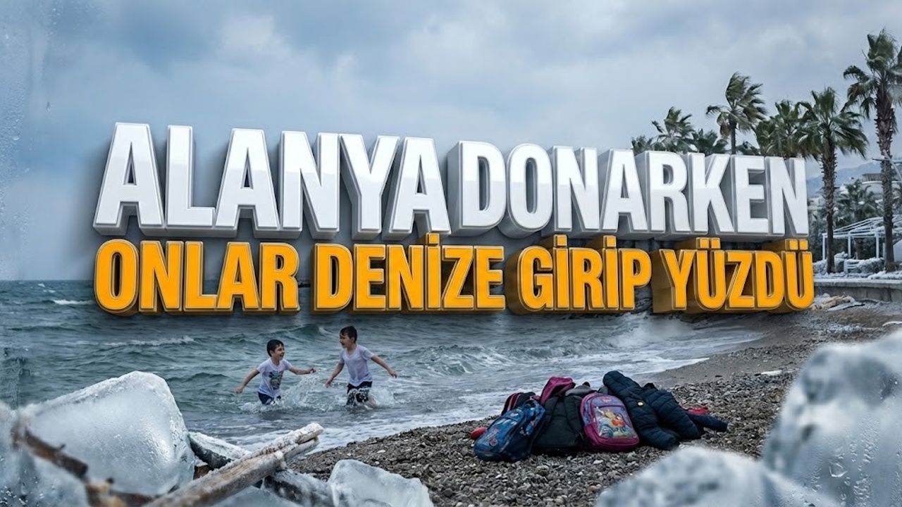 Alanya dondurucu soğukla mücadele ederken ve bölge adeta "donarken", şehir merkezinde okul çıkışı sahile gelen iki ilköğretim öğrencisi ezber bozdu. Okul çantalarını kıyıya bırakan gençler, üzerlerindeki tişörtlerle kendilerini 18 derece sıcaklıktaki Akdeniz’in sularına attı.