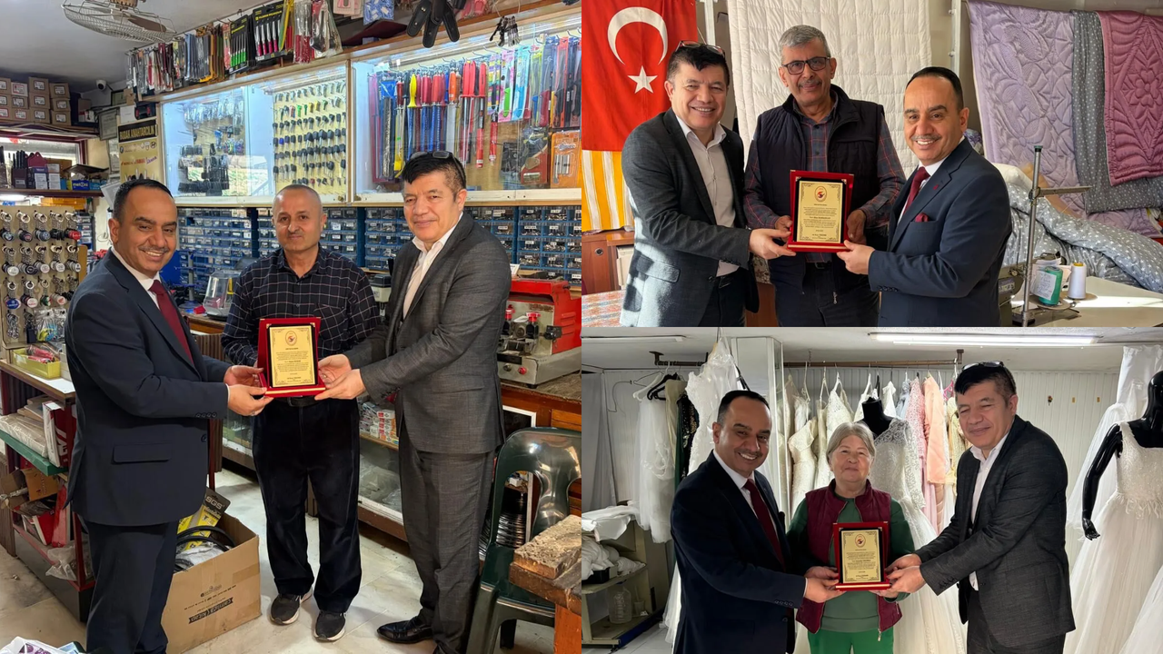 Alanya Esnaf ve Sanatkârlar Odası (ALESO) ve Alanya Vergi Dairesi Müdürlüğü, vergi bilincini artırmak amacıyla anlamlı bir iş birliğine imza attı. ALESO Başkanı Ali İhsan Özdemir ve Vergi Dairesi yetkililerinden oluşan heyet; İrfan Karaaslan, Semahat Eslemez, Bahri Budak ve Mustafa Gürsoy’u dükkânlarında ziyaret ederek teşekkür plaketi takdim etti.