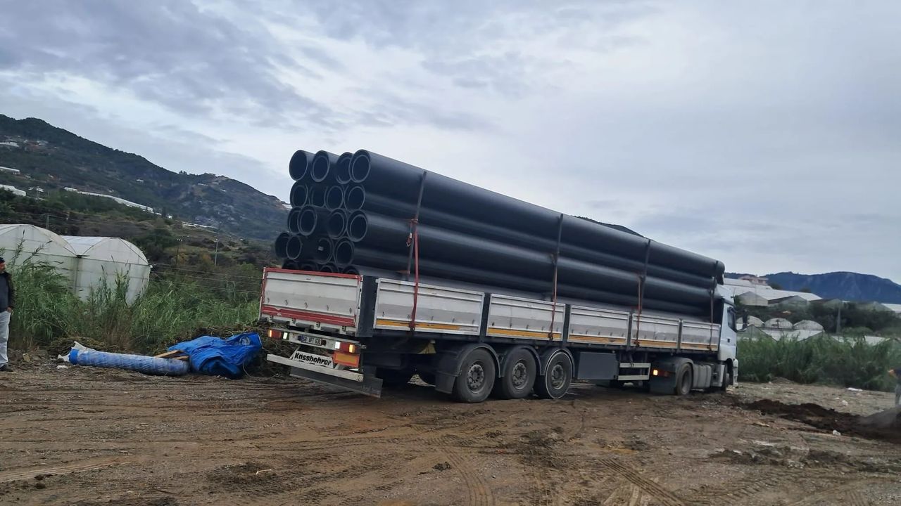 Alanya'nın batı mahalleleri için kritik öneme sahip olan ve temeli 2015'te atılan Yeniköy Barajı'nda 9 yıllık bekleyişin ardından sulama boruları bölgeye ulaşmaya başladı.