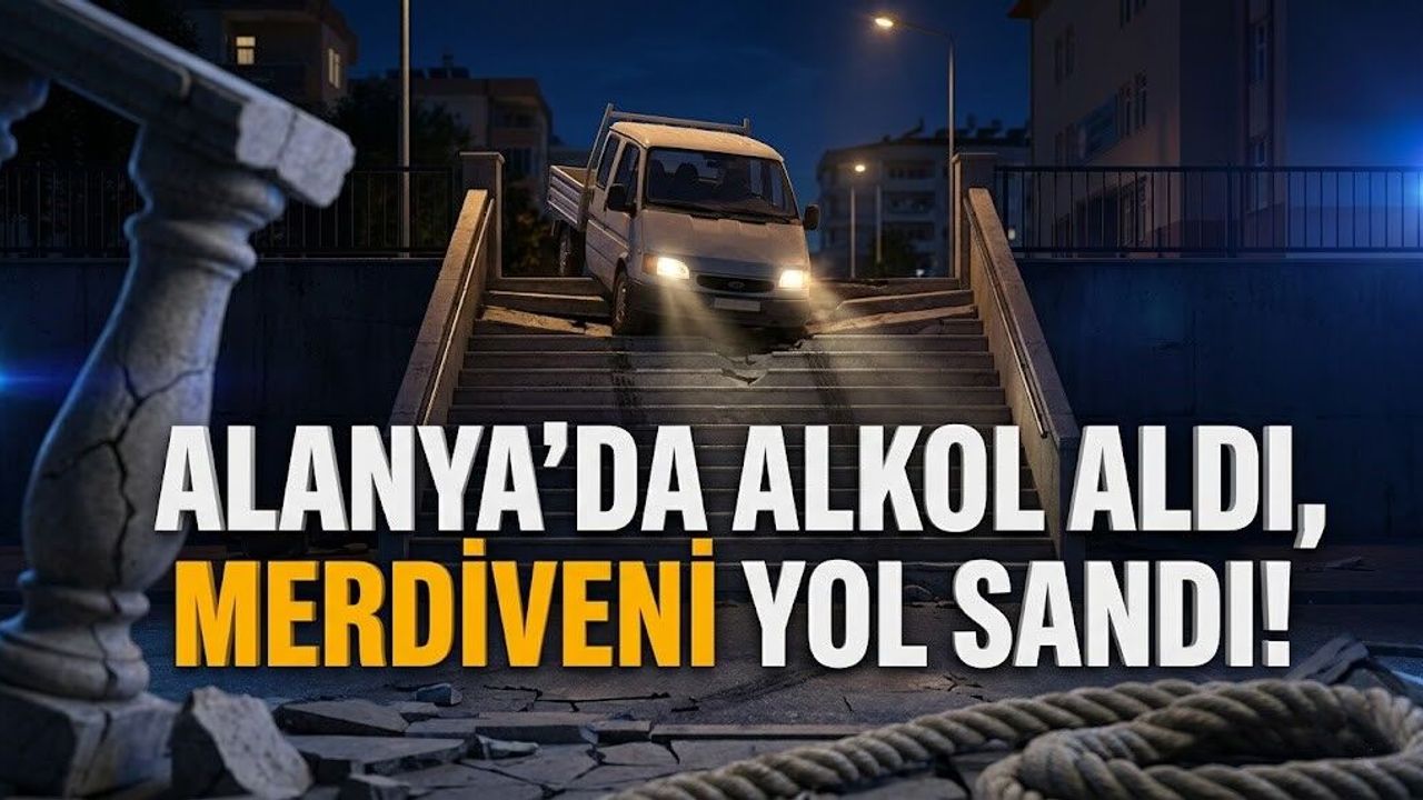 Avsallar’da gece sessizliğini motor sesleri ve gıcırtılar bozdu. Alkollü olduğu iddia edilen bir sürücü, kullandığı hafif ticari araçla yanlış yöne girince karşısına çıkan ilkokul merdivenlerini iniş yolu zannetti. Basamakları tek tek inmeye başlayan araç, bir süre sonra merdivenlerde asılı kalarak mahsur kaldı.