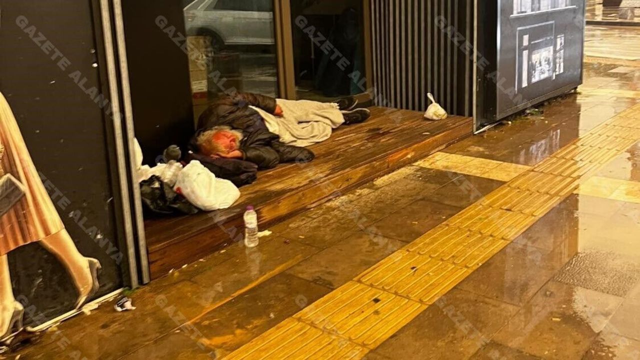 Kentin göbeğinde kaydedilen görüntülerde, kimliği henüz belirlenemeyen yaşlı bir adamın sağanak yağıştan korunmak için bir iş yerinin tentesine sığındığı görüldü. Soğuğa ve ıslak zemine aldırış etmeden betonun üzerinde uyumaya çalışan yaşlı adamın bu çaresiz hali, yoldan geçen vatandaşların yüreğini burktu.