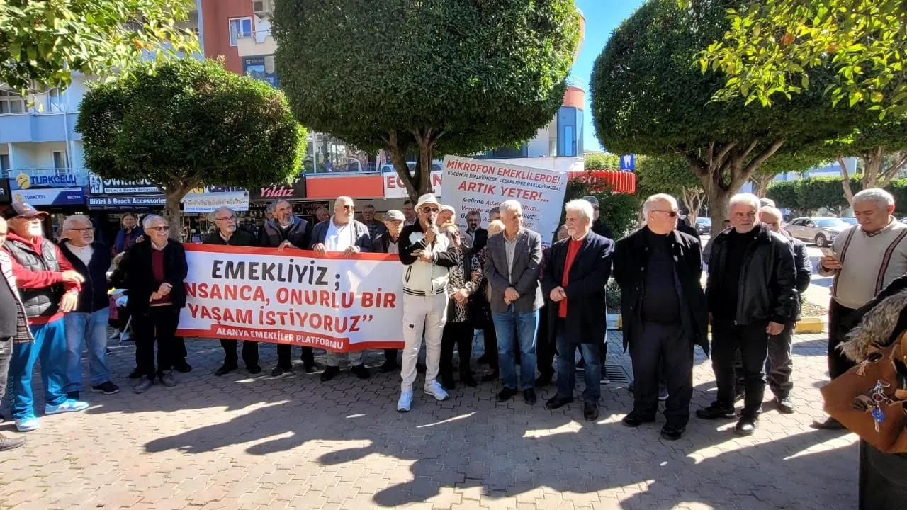 Alanya Emekliler Platformu tarafından Mahmutlar Menderes Bulvarı’nda düzenlenen dev protestoda, emekliler "artık yeter" dedi. "Mikrofon emeklilerde" sloganıyla kurulan kürsüde, cüzdanlardaki boşluk ve mutfaktaki yangın en çıplak haliyle dile getirildi. 20 bin liralık emekli maaşının barınma ve temel gıda ihtiyaçlarını bile karşılamadığını belirten vatandaşlar, taleplerinin sadaka değil, yılların emeği olan hakları olduğunu vurguladı.