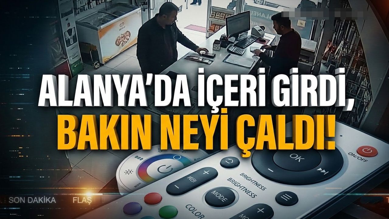 Alanya’da benzerine az rastlanır, "bu kadarına da pes" dedirten bir hırsızlık olayı gerçekleşti. Bir iş yerine müşteri gibi giren şüpheli, etrafı kolladıktan sonra gözüne kestirdiği ışık kumandasını el çabukluğuyla cebine indirerek kayıplara karıştı.