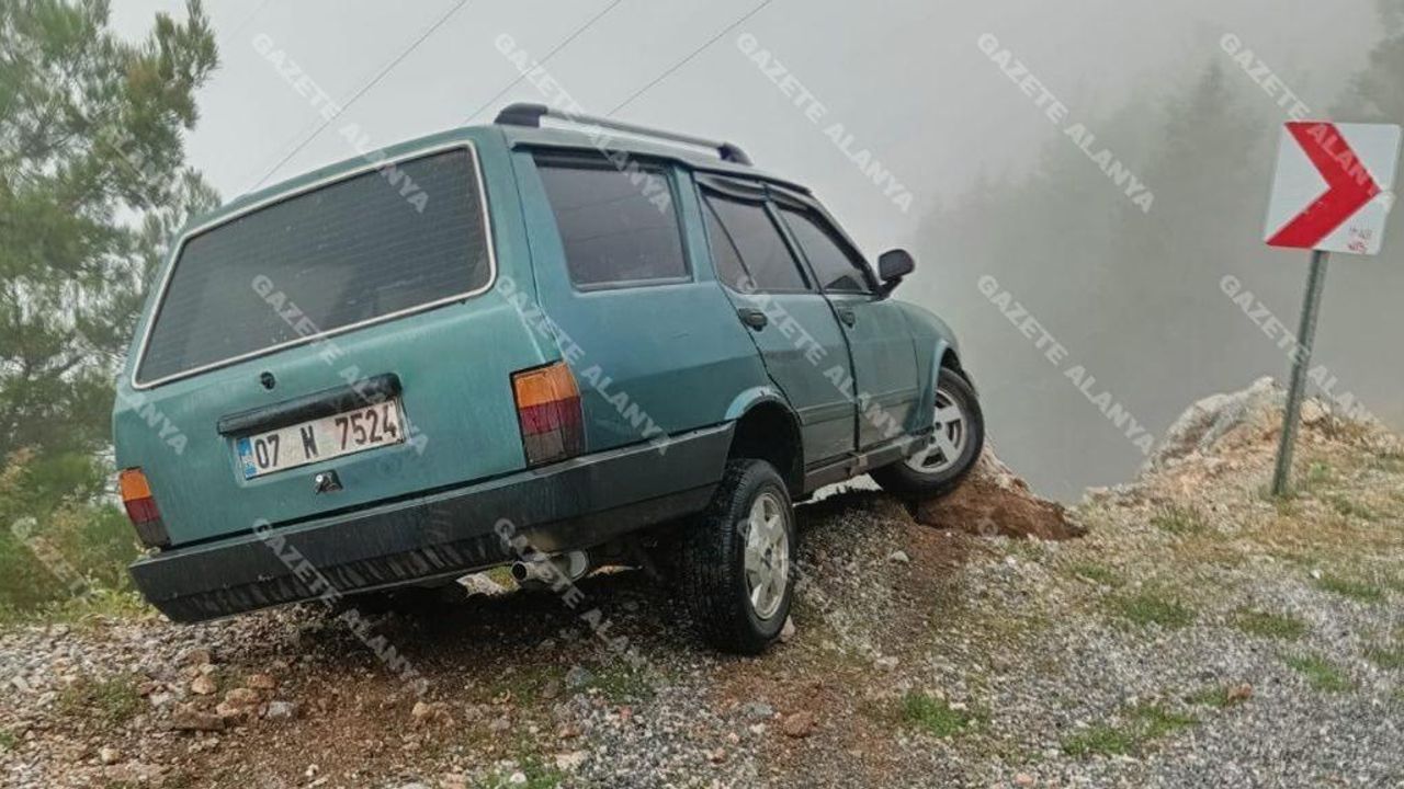 Alanya’nın Kuş Yuvası yolunda yoğun sis nedeniyle bir otomobil uçurumun kenarında asılı kaldı. 07 N 7524 plakalı Tofaş Kartal marka aracın sürücüsü, görüş mesafesinin düşmesiyle direksiyon hakimiyetini kaybederek yoldan çıktı. Araç, bir kayaya takılarak uçuruma yuvarlanmaktan kıl payı kurtuldu. Olayda yaralanan olmazken, otomobil çekici yardımıyla güvenli alana alındı. Yetkililer, sürücüleri sisli ve yağışlı havalarda dikkatli olmaları konusunda uyardı.