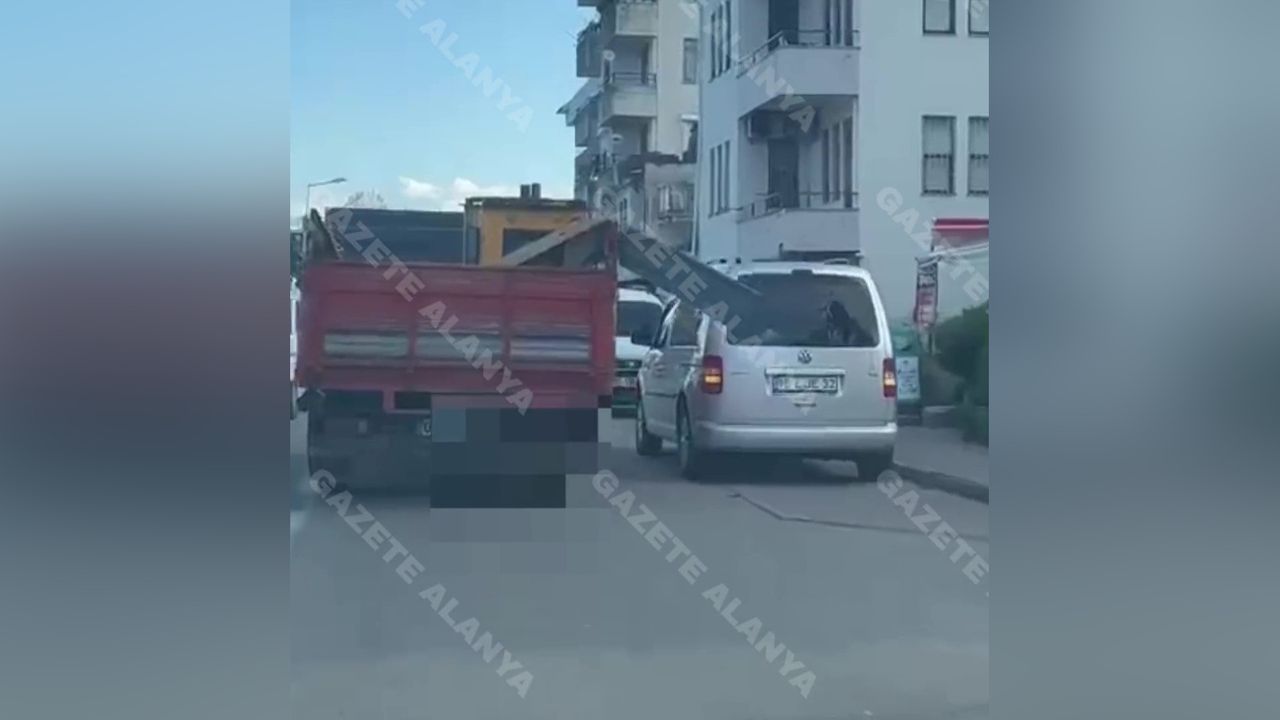 Park halindeki araçların yanından tehlikeli bir şekilde geçen kamyonet, kasa kapağının bu araçlara teğet geçmesiyle çarpmanın eşiğinden döndü. Gözlemciler, açık kapağın seyir halindeyken bir yayaya veya başka bir araca çarpması durumunda ciddi yaralanmalara yol açabileceği konusunda uyarıyor.