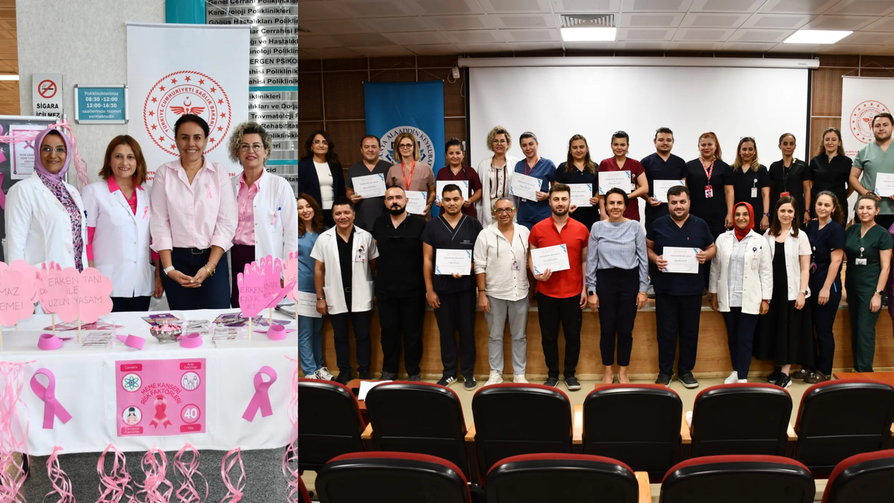 Alanya Eğitim ve Araştırma Hastanesi, 1-31 Ekim Meme Kanseri Farkındalık Ayı etkinlikleri kapsamında, erken teşhisin önemine dikkat çekmek amacıyla poliklinik girişine bilgilendirme standı kurdu. Kanser Kayıt Hemşiresi Birim Sorumlusu Emine Geçgün tarafından açılan ve Başhekim Prof. Dr. Banu Karakuş Yılmaz ile hastane yönetiminin destek verdiği stantta, hasta ve personele meme kanseri belirtileri, tarama yöntemleri ve erken teşhisin hayat kurtarıcı rolü anlatılarak broşürler dağıtıldı. Başhekim Yılmaz, "Erken Teşhis Hayat Kurtarır" sloganıyla düzenlenen bu çalışmanın toplumda bilinç düzeyini artırmayı hedeflediğini belirtti.