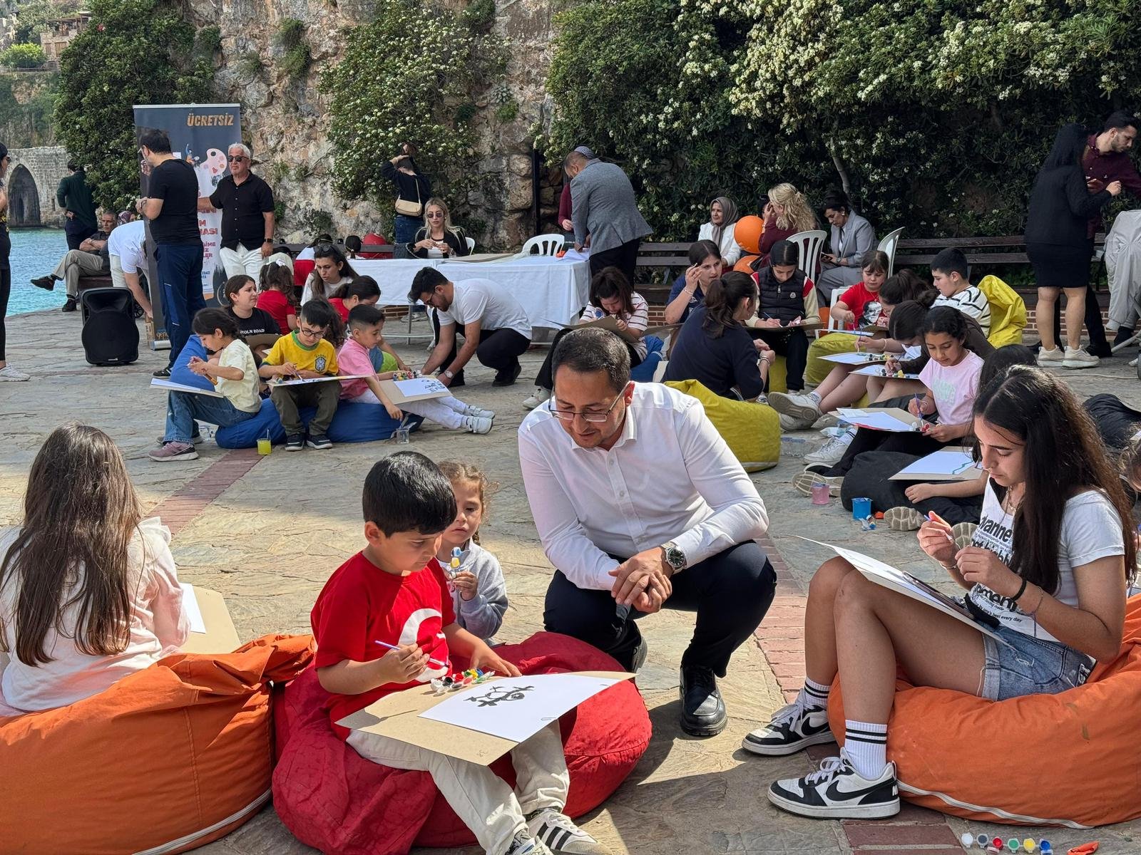 Alanya’da 23 Nisan Ulusal Egemenlik ve Çocuk Bayramı kutlamaları kapsamında düzenlenen resim yarışması, ilçedeki minik sanatçıların yoğun katılımıyla büyük bir görsel şölene dönüştü. AK Parti Alanya Gençlik Kolları Başkanı Semih Ersoy’un ev sahipliğinde gerçekleştirilen etkinliğe, Antalya İl Gençlik Kolları Başkanı Niyazi Alkan da katılarak çocukların heyecanına ortak oldu. Alanya sokaklarında bayram coşkusunu sanatla birleştiren programda, geleceğin ressamları hünerlerini sergiledi.