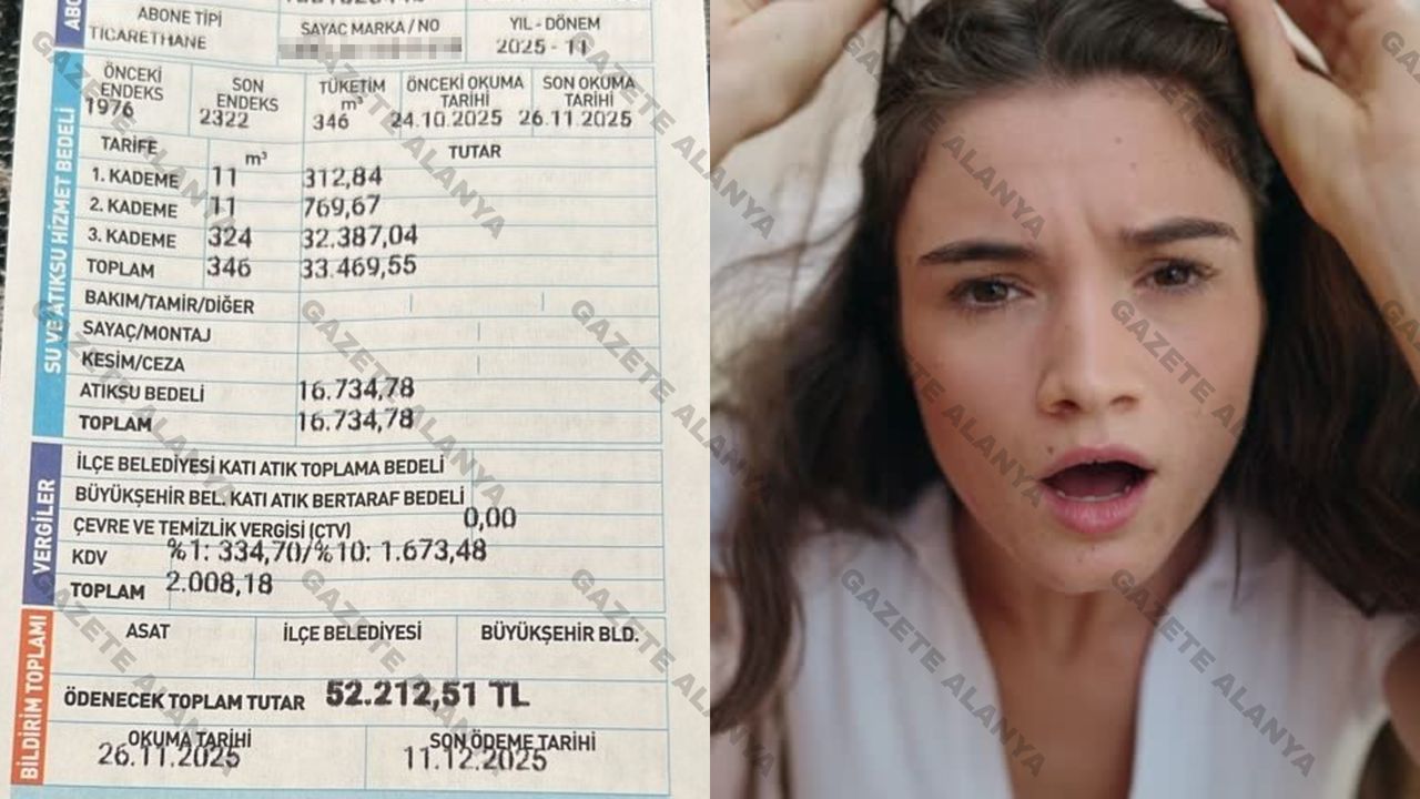 Alanya'da geçimini muzculuk yaparak sağlayan bir vatandaş, Antalya Su ve Atıksu İdaresi (ASAT) tarafından gönderilen fatura karşısında hayatının şokunu yaşadı. Tarımsal sulama için kullandığı suya karşılık gelen 52 bin TL'lik fatura, üreticiyi isyan ettirdi.