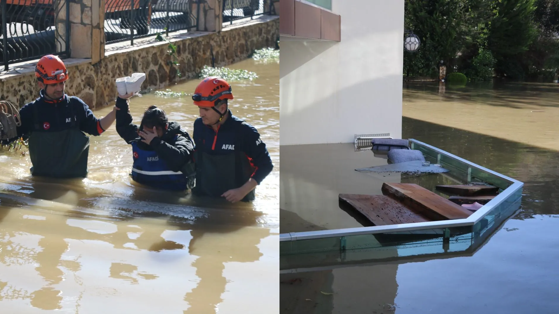 Alanya’da günlerdir etkisini sürdüren sağanak yağış, Dim Çayı’nın taşmasına neden oldu. Metrekareye 74.4 kilogram yağışın düştüğü ilçede, özellikle Kestel Mahallesi tam anlamıyla afet bölgesine döndü. Çay seviyesinin yükselmesiyle Regülatör Caddesi üzerindeki birçok lüks site ve villanın zemin katları tamamen su altında kaldı.