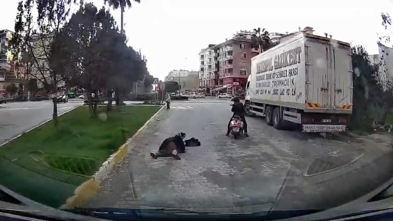 Alanya, son günlerde motosiklet sürücülerinin karıştığı kaza haberleriyle sarsılıyor. Mahmutlar Mahallesi yeni çevreyolu bağlantısında seyreden bir motosiklet, yoldaki derin çukuru fark edemeyince facianın eşiğinden dönüldü. Çukura giren motosikletin şiddetle sarsılması sonucu arkada yolcu konumunda bulunan kadın, dengesini kaybederek asfalta savruldu. O dehşet anları, arkadan gelen bir aracın araç kamerasına saniye saniye yansıdı.