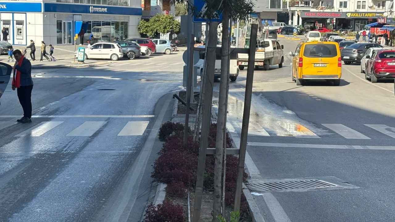 Cadde boyunca akan sular trafik akışını zorlaştırırken, esnaf ve sürücüler yolun sürekli ıslak olması nedeniyle kayganlaşan zemine dikkat çekti. Olası kazalara davetiye çıkaran durum, yayalar için de geçiş çilesine dönüştü.