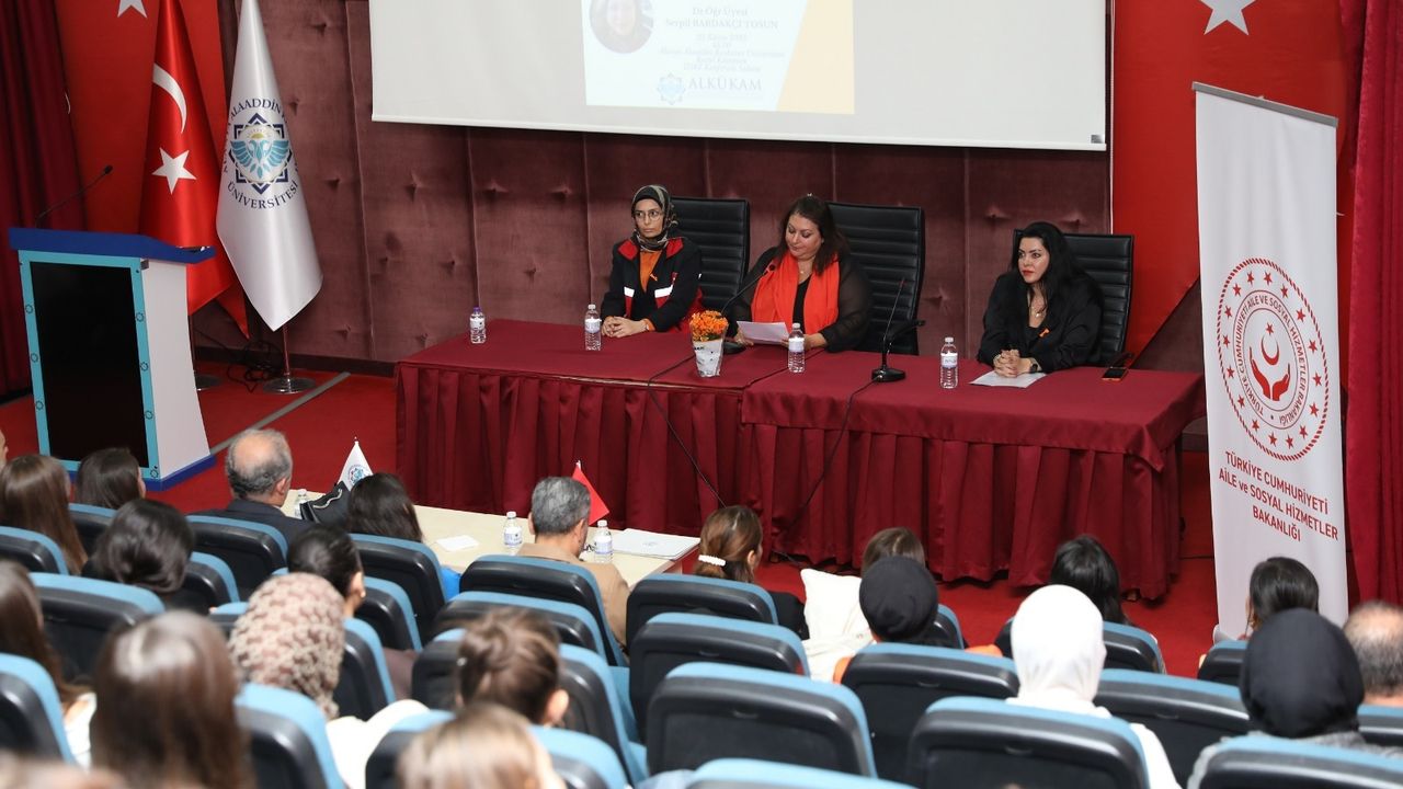 Alanya Alaaddin Keykubat Üniversitesinde (ALKÜ) düzenlenen çeşitli etkinliklerle toplumsal konularda farkındalık oluşturulmaya ve dikkat çekilmeye devam ediliyor. Bu kapsamda ALKÜ Kadın ve Aile Çalışmaları Uygulama ve Araştırma Merkezi tarafından İktisadi, İdari ve Sosyal Bilimler Fakültesi Konferans Salonu'nda “25 Kasım Kadına Yönelik Şiddetle Mücadele Paneli” düzenlendi. Moderatörlüğünü Dr. Öğr. Üyesi Serpil Bardakçı Tosun’un yaptığı panelde, Antalya Barosu Alanya Kadın Hakları Kurulu Başkanı Av. Gülfer Gözütok, Alanya Sosyal Hizmet Merkezi Sosyal Çalışmacı Duygu Urlu konuşmacı oldu. Panele Rektör Yardımcısı Prof. Dr. Atıf Bayramoğlu, ALTSO Yönetim Kurulu Üyesi Adil Memiş, ALKÜ Kadın ve Aile Çalışmaları Uygulama ve Araştırma Merkezi (ALKÜKAM) Müdürü Doç. Dr. Meltem Akca, ALKÜKAM üyeleri, akademisyenler ve öğrenciler katıldı.