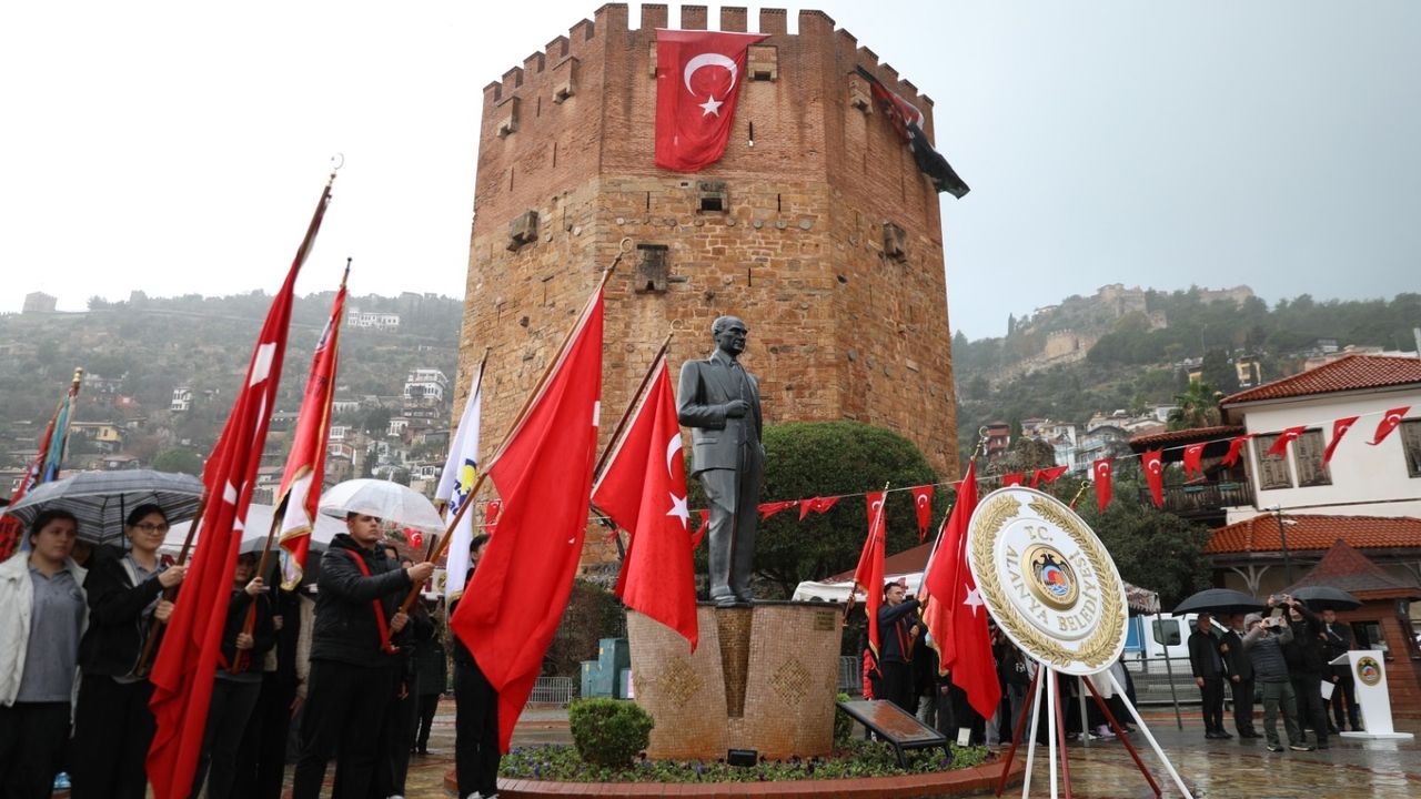Kutlama programı, İskele Meydanı Kızılkule önünde bulunan Atatürk Anıtı’nda gerçekleştirilen çelenk sunma töreniyle başladı. Törene; Alanya Kaymakamı Şakir Öner Öztürk, Alanya Belediye Başkanı Osman Tarık Özçelik, ilçe protokolü, siyasi parti temsilcileri, sivil toplum kuruluşları ve öğrenciler katılım sağladı. Anıta çelenklerin sunulması, saygı duruşu ve İstiklal Marşı’nın okunmasının ardından kutlamalar Alanya Kültür Merkezi’nde (AKM) devam etti.