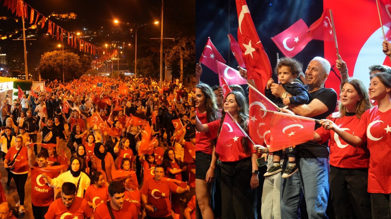 Alanya'da 29 Ekim Cumhuriyet Bayramı kutlamaları, Atatürk Anıtı önünde başladı. Alanya Belediyesi ve Alanya Kent Konseyi iş birliğinde düzenlenen Fener Alayı Yürüyüşü, Kaymakam Şakir Öner Öztürk, Belediye Başkanı Osman Tarık Özçelik, ALTSO Başkanı Eray Erdem, Alanya Kent Konseyi Başkanı Nurhan Özcan ve siyasi parti temsilcilerinin Cumhuriyet meşalesini yakmasıyla başladı. Binlerce vatandaş ellerinde Türk bayraklarıyla marşlar eşliğinde belirlenen güzergâhta yürüyüşe geçti. Renkli görüntülere sahne olan Fener Alayı Yürüyüşü, Atatürk Caddesi, Bostancıpınarı Caddesi ve İskele Caddesi boyunca sürdü. Çok sayıda vatandaş ise yürüyüşe balkonlarından ve iş yerlerinden destek verdi.