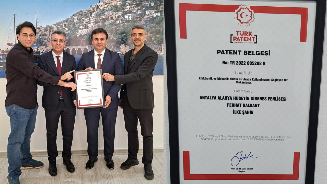 Alanya eğitim tarihinde bir dönüm noktası yaşandı. TEKNOFEST 2023’te Türkiye üçüncülüğü elde eden “Elektronik ve Mekanik Kilidin Bir Arada Kullanılmasını Sağlayan Bir Mekanizma” adlı proje, Türk Patent ve Marka Kurumu tarafından resmen tescillendi. Bu gelişmeyle birlikte proje, Alanya genelinde lise düzeyinde alınan ilk ve tek patent olma unvanını kazandı.