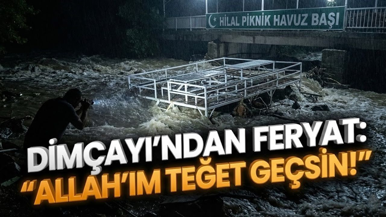 Günlerdir süren şiddetli sağanak yağış Alanya’yı adeta esir alırken, ilçenin göz bebeği Dimçayı’nda korku dolu anlar yaşandı. Taşan suların önüne ne kattıysa sürüklediği bölgede, bir işletme sahibinin yıkımı engellemek için verdiği mücadele kameralara yansıdı. Dev akıntıya kapılarak hızla ilerleyen çardak ve malzemelerin, işletmenin ana demir köprüsüne çarpmaması için dua eden adamın “Allah’ım teğet geçsin!” diyerek attığı feryat, yaşanan felaketin boyutunu gözler önüne serdi. Saniyelerle yarışılan o anlarda, yılların emeğinin yok oluşuna tanıklık eden vatandaşın çaresiz bekleyişi sosyal medyada da büyük yankı uyandırdı.