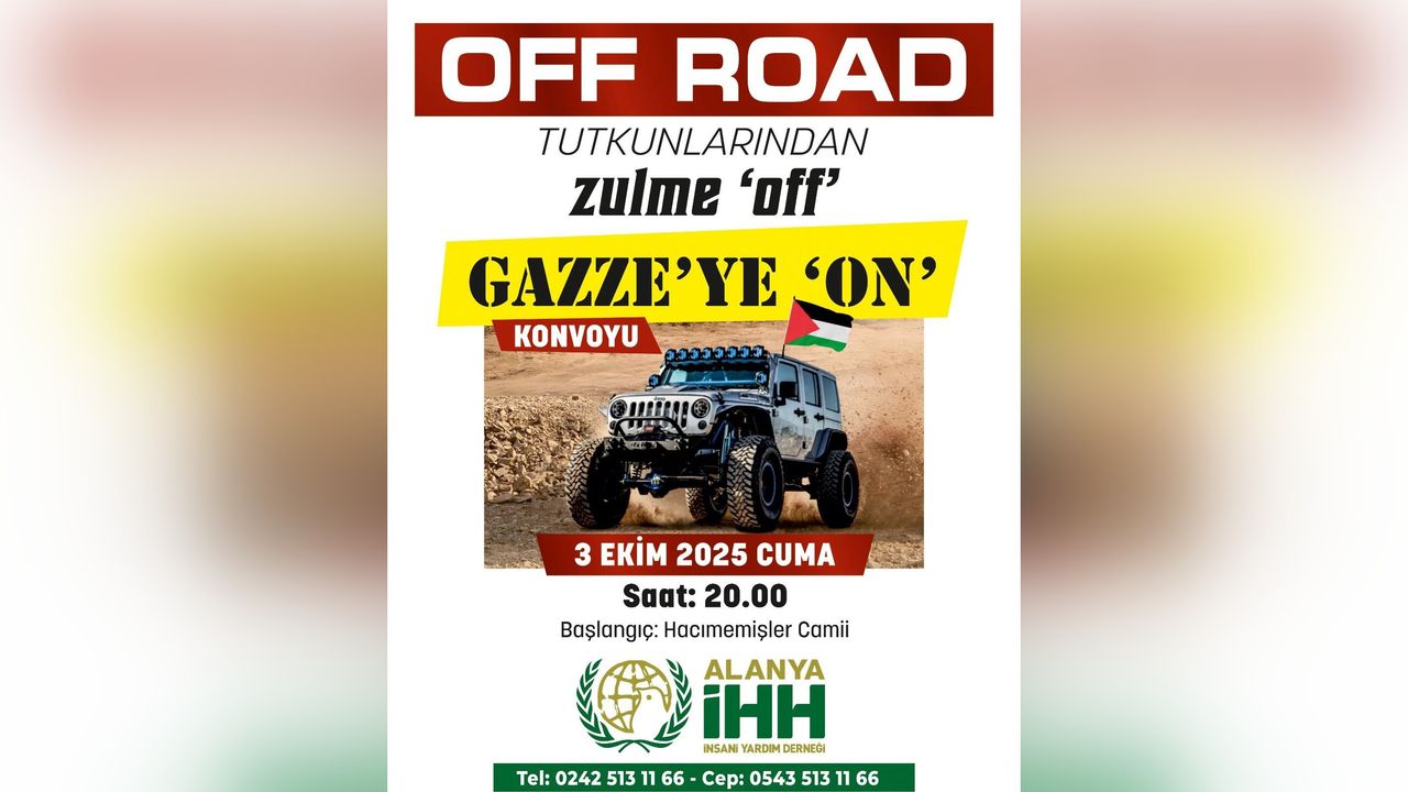 Alanya İHH, tüm off-road ve motor sporları tutkunlarını, sivil toplum kuruluşlarını ve duyarlı tüm vatandaşları, Gazze'nin sesini yükseltmek için bu anlamlı etkinliğe katılmaya davet ediyor.