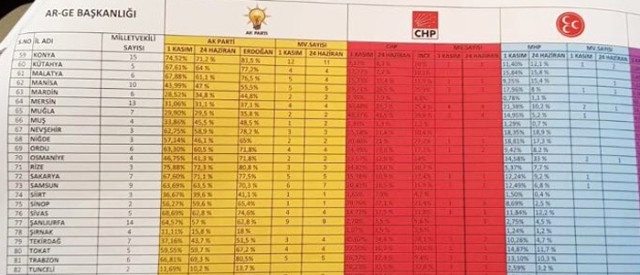 Anket sonucunda hangi partinin kaç milletvekili çıkaracak yönünde AK Parti AR GE Başkanlığı tarafından Cumhurbaşkanı Erdoğan'a yazıldığı görülen raporun sonuç bölümünde şu ifadelere yer verilmiş; Anket verilerine göre yapılan çalışmada AK Parti'nin şu an için 330 vekil çıkarabileceği ortaya çıkmaktadır.