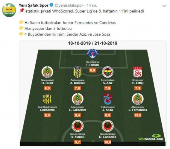 Candeias (Gençlerbirliği): 10 puan