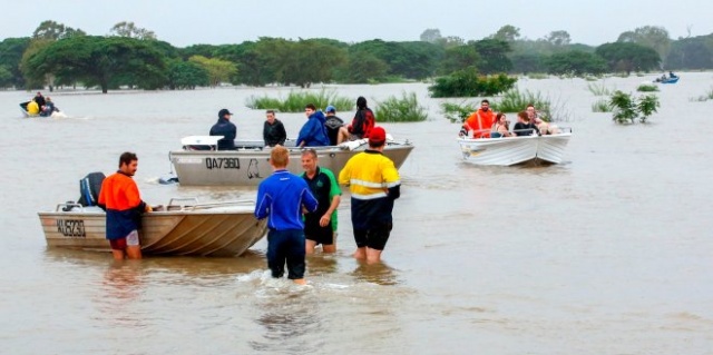 Ross Nehri barajının kapaklarının açılmasıyla, Townsville kentinin büyük bölümü sular altında kalırken, binlerce kişi sulara kapılmamak ve tehlikeli hayvanlardan kaçınmak için evlerinin çatılarına sığındı.