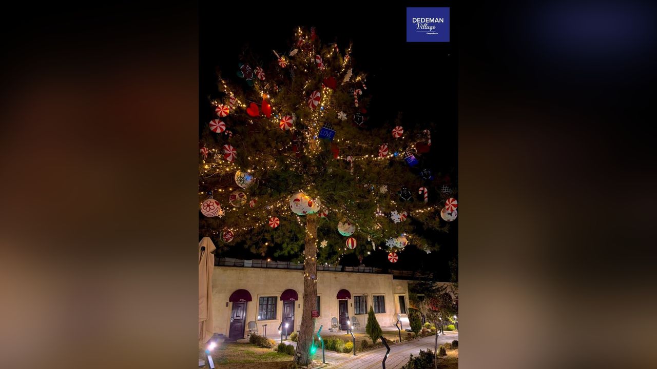 Otel, bahçesinde yer alan 12 metre uzunluğundaki canlı dev çam ağacını büyük bir özenle süsledi. Vinç yardımıyla ve 3 gün süren yoğun bir çalışmayla donatılan bu ağaç, Kapadokya'nın en büyük Noel ağacı unvanıyla bölgenin yeni yıl ışıklarını simgeliyor.