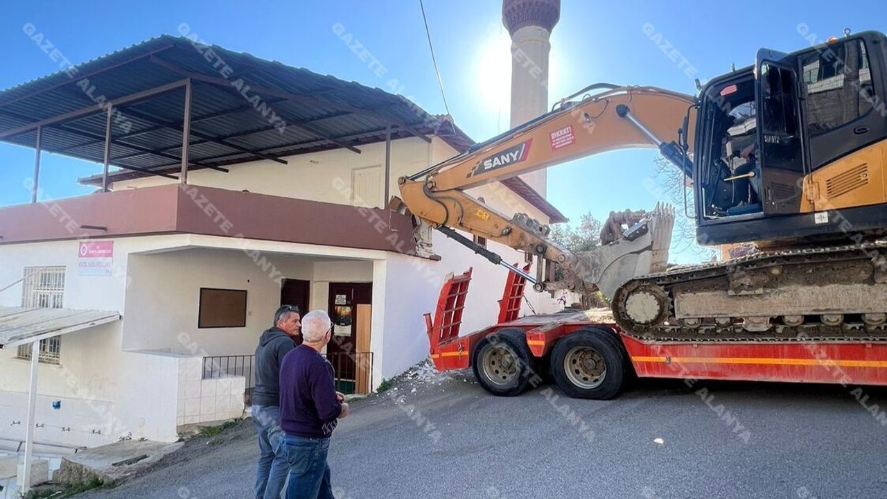 Alanya’nın Küçük Hasbahçe Mahallesi’nde bugün yürekleri ağza getiren bir kaza yaşandı. Yan tarafı işlek bir yol olan Küçük Hasbahçe Camii, kontrolden çıkan bir iş makinesinin hedefi oldu. Edinilen bilgiye göre, bir tırın üzerinde taşınan ekskavatör, aracın geri gitmesi sonucu büyük bir hızla caminin duvarına çarptı.