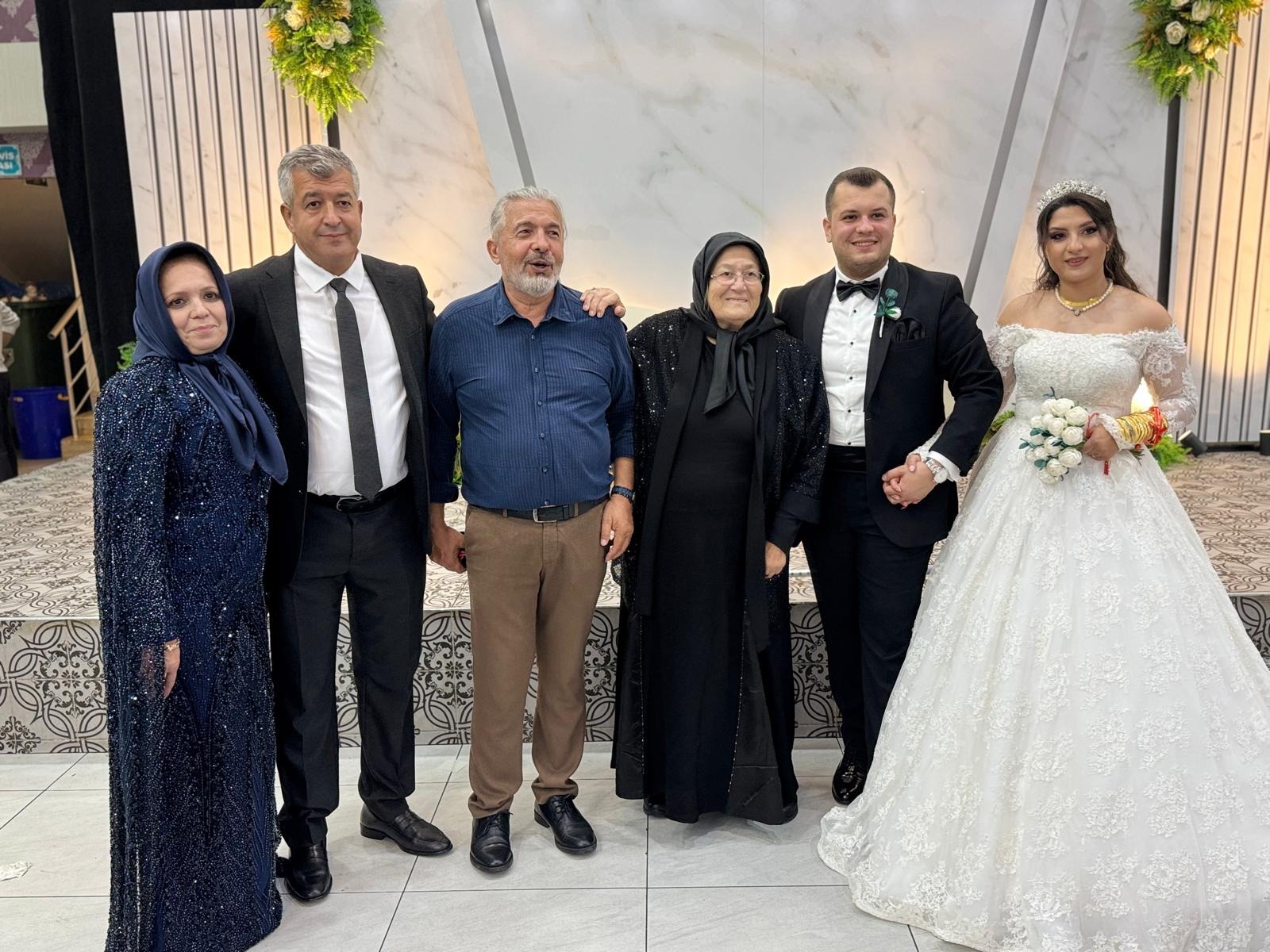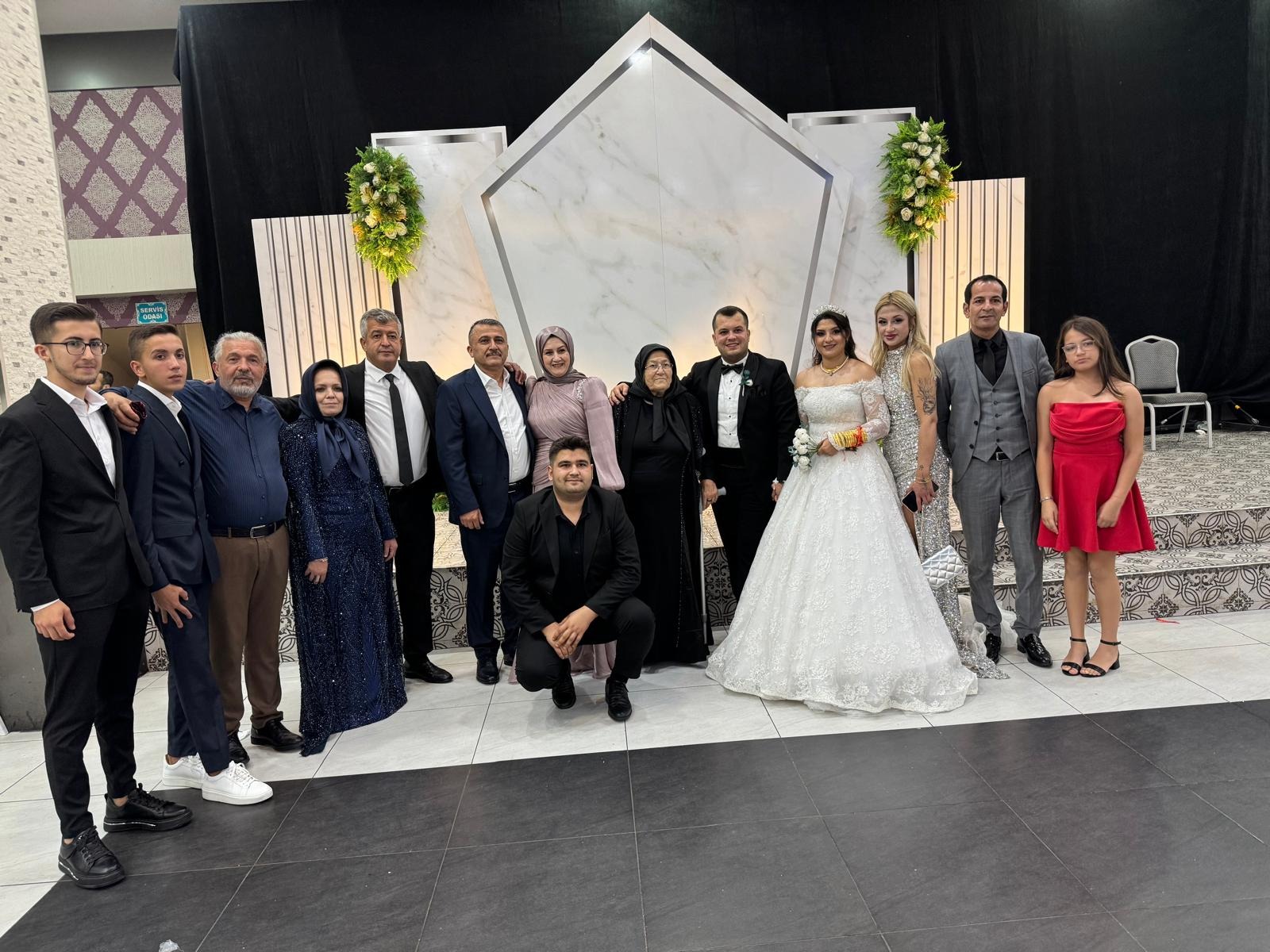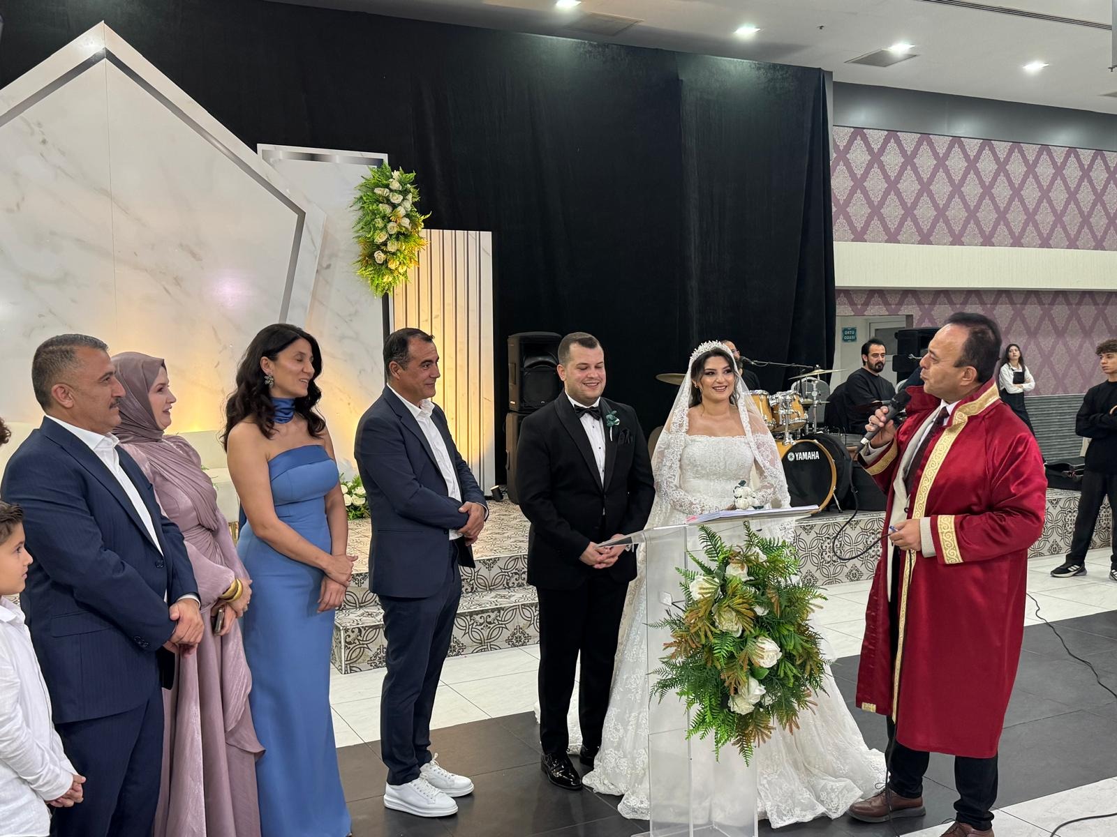 Takı merasimi sırasında gelin ve damadı sevenleri yalnız bırakmadı; dostlar ve akrabalar hem manevi hem de maddi destekleriyle genç çifte unutulmaz bir gece yaşattılar.