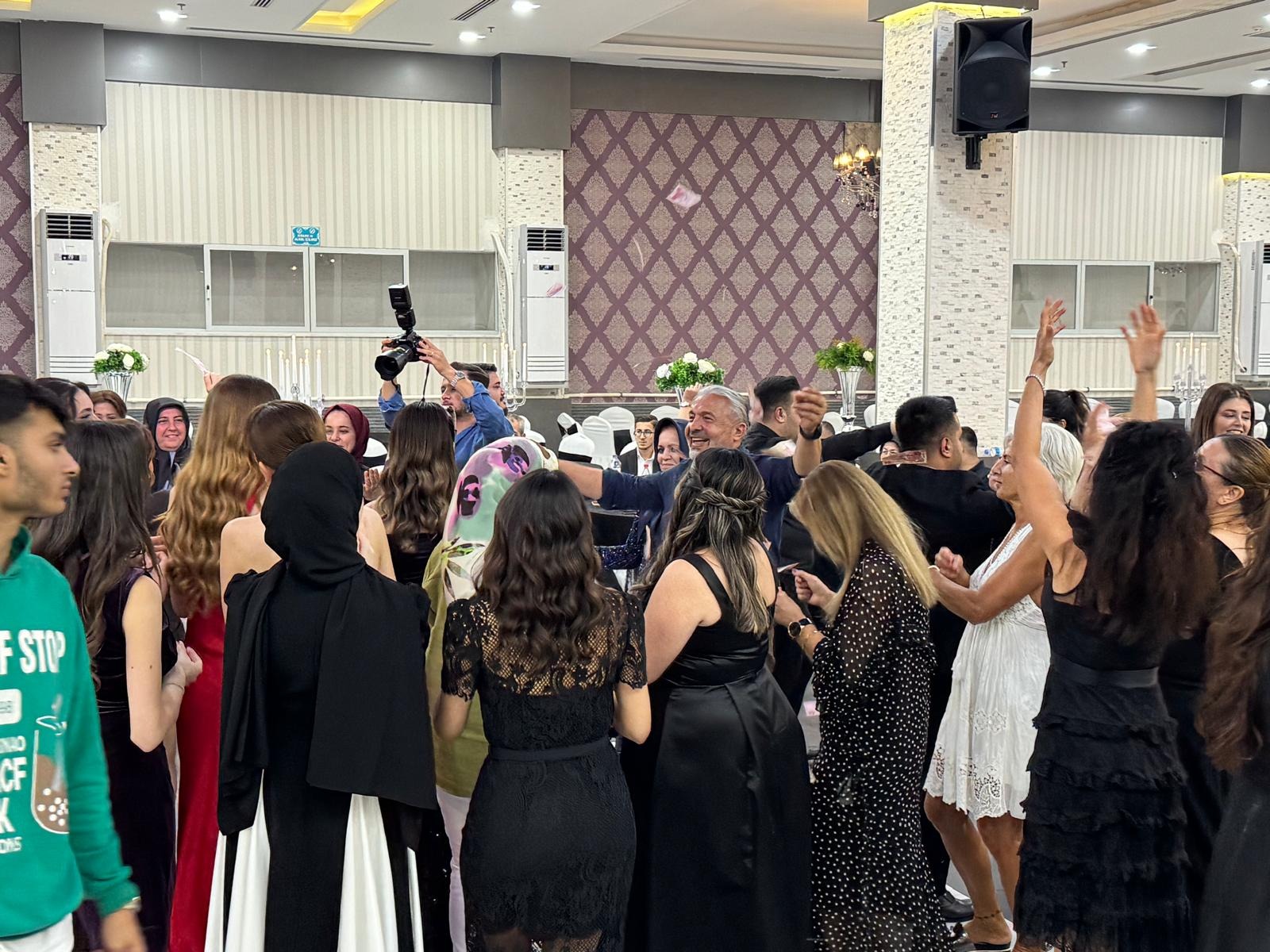 Gece boyunca neşe ve coşkunun eksik olmadığı törende, gelin ve damadın yakınları müzik eşliğinde doyasıya eğlendi. Pist bir an olsun boş kalmadı, davetliler genç çiftin mutluluğuna oyunlarıyla, alkışlarıyla ortak oldular.
