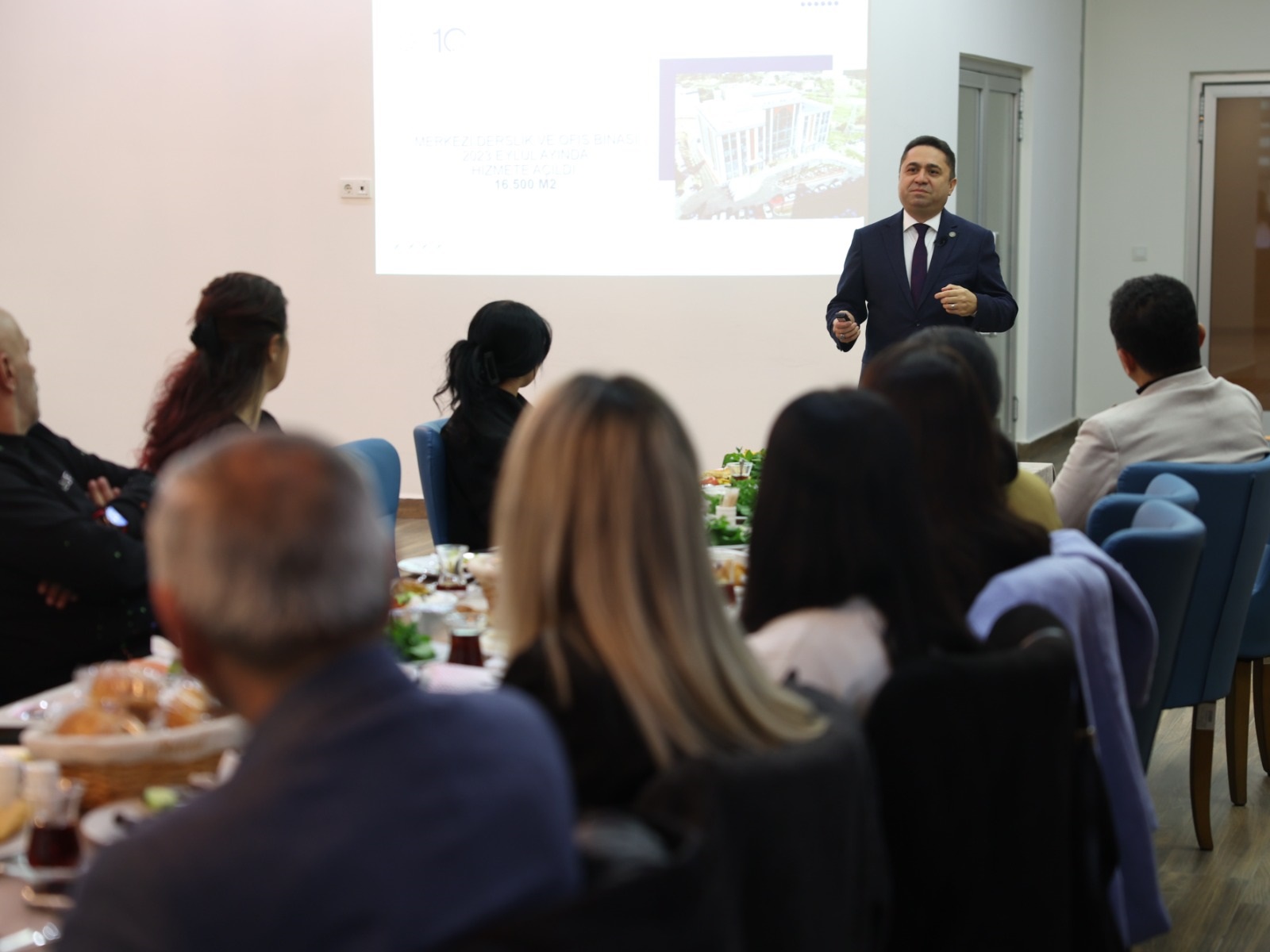 Basın çalışanlarının 10 Ocak Çalışan Gazeteciler Günü’nü kutlayarak konuşmasına başlayan Rektör Türkdoğan, hayatını kaybeden gazetecilere rahmet diledi. ALKÜ’de yapılan projeleri ve gelecekte yapılacak projeleri sunum eşliğinde detaylarıyla anlatan Rektör Türkdoğan, “Sizlerin fikirleri üniversitemizin gelişimine önemli katkılar sağladı. Alanyalı gazetecilerimiz Alanya’mızın ihtiyaçlarını en iyi bilen kişilerdir. ALKÜ olarak Türkiye’nin en genç ve başarılı üniversiteleri arasında yer alıyoruz. Burada yaptığımız projeler ve gelişmemizin kamuoyuna duyurulmasında en büyük emek gazetecilere düşüyor ve bunu da en iyi şekilde yapıyorlar. Üniversitemiz 10 yılda büyük projelere imza attı ve genç üniversiteler arasında en hızlı gelişen ikinci üniversite olmayı başardı. İlerleyen günlerde üniversitemizi daha ileriye taşıyacak projelere ve başarılara imza atmaya devam edeceğiz. Cikcilli Yerleşkesine yaptığımız Faika Hacıkadiroğlu Merkezi Araştırma Laboratuvarını önümüzdeki aylarda açmayı planlıyoruz. Tıp ve Diş Hekimliği Fakültesi öğrencilerimizin derslikleri ve 3 bin kişilik KYK Yurt binalarının inşaatları yapımı devam ediyor. Bağışçılarımızla birlikte başlattığımız Akseki Orman Fakültesi ve KYK Yurt binası çalışmalarımız sürüyor. Bunun yanında Gazipaşa Denizcilik MYO, Dijital Tarım MYO, GES Projesi, öğrenci ve akademik personel artışı, Syedra Antik Kenti kazı çalışmalarının üniversitemiz tarafından yapılması, Adli Tıp Kurumu’nun Alanya’mıza kazandırılması, Alanya Teknokent ve Alanya Tekmer’in faaliyete geçmesi gibi onlarca yeni projelere imza atarak ilerlememizi sürdürüyoruz. Üniversitemizin tüm bu başarıları, Alanyalı hemşehrilerimiz başta olmak üzere, gazetecilerimizin, bağışçılarımızın ve şehrimizin tüm kurumlarının birlikte hareket etmesi ile ortaya çıkıyor. Bunun yanında başta önceki dönem Dışişleri Bakanımız ve Antalya Milletvekili Sayın Mevlüt Çavuşoğlu’nun büyük destekleri sayesinde üniversitemiz büyümesini daha da hızlandırıyor. ALKÜ ailesi olarak üniversitemizin hızla ilerlemesi adına üzerimize düşenin daha fazlasını yapıyoruz. Sizlerin destekleri ile daha da gelişmeye devam edeceğiz. ALKÜ Ailesi adına gazetecilerimizin gününü en samimi duygularımla kutluyorum. İyi ki sizlerle birlikteyiz. Nice 10 Ocak’larda buluşmak dileğiyle.” dedi. Konuşmaların ardından Rektör Türkdoğan, gazetecilerin sorularını yanıtladı. Buluşma, hatıra fotoğrafı ile sona erdi.