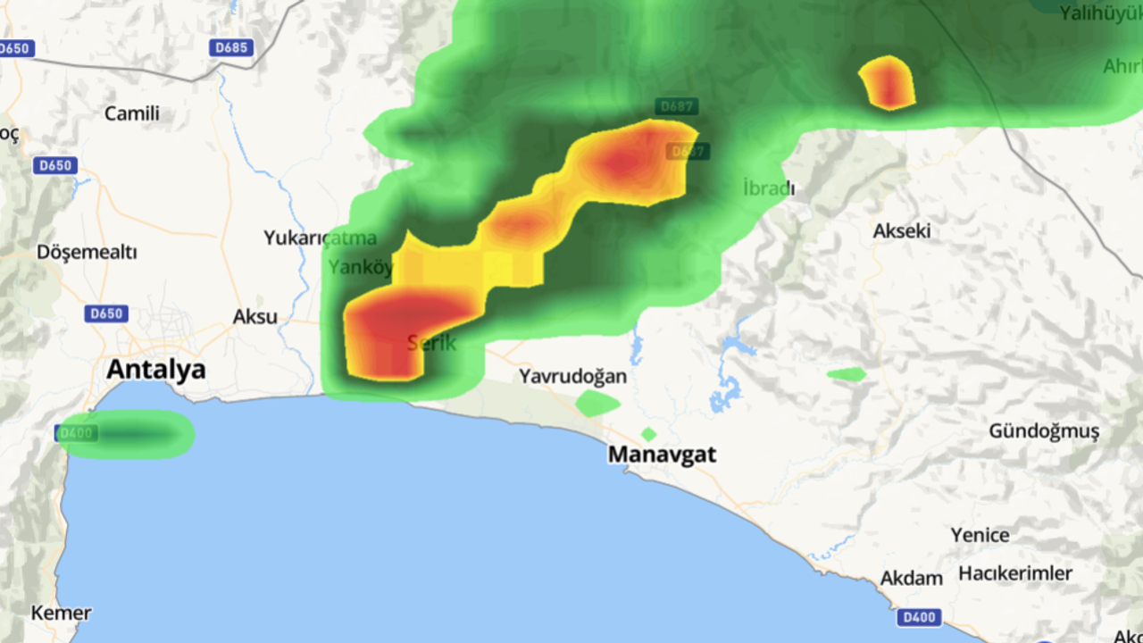 Antalya ve çevresini etkisi altına alan şiddetli yağış, şehirde hayatı olumsuz etkiledi. Özellikle Antalya-Serik güzergahında trafik tamamen kilitlendi, uzun araç kuyrukları oluştu ve yollar su altında kaldı.