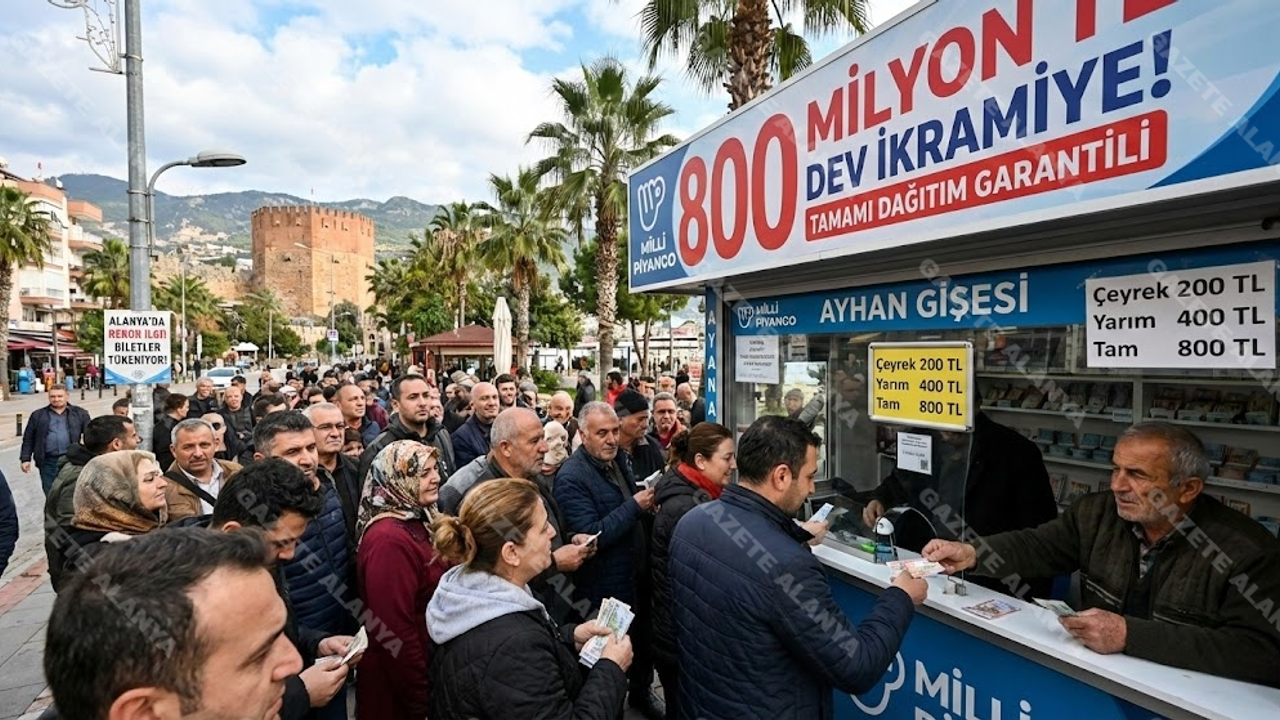 Alanya, Milli Piyango yılbaşı çekilişindeki 800 milyon TL’lik dev ikramiyeye kilitlendi. Bu yıl biletlere olan ilginin geçen yıla oranla %15 arttığı belirtilirken, bayilerde yoğun mesai yaşanıyor.