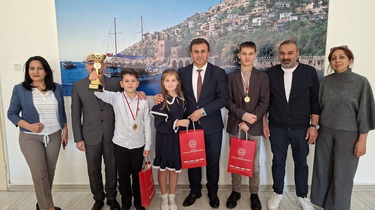 Öğrencilere okul idarecileri ve öğretmenlerinin de eşlik ettiği kabulde Müdür Yusuf Yılmaz, genç yetenekleri tek tek tebrik etti. Başarılarından dolayı öğrencilere madalya ve hediyelerini takdim eden Yılmaz, Türkiye şampiyonu olan Emin Abdrashıtov’un Rusya Federasyonu’nda gerçekleştirilecek olan dünya finallerinde Alanya’yı ve Türkiye’yi en iyi şekilde temsil edeceğine inandığını belirterek başarılar diledi.